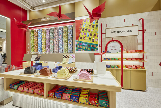 ネスレ日本では、2019年に「キットカット」ブランドで大袋外装をプラスチックから紙素材に変更して以降、想いや願いを書いて、「折り鶴」などを折って気持ちを伝えるというコミュニケーションを展開してきました。今回、当店舗の特長である気持ちを伝えるギフトの象徴として、「折り鶴」を採用しています。