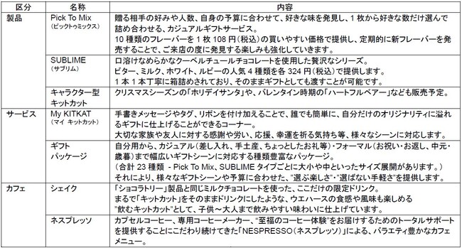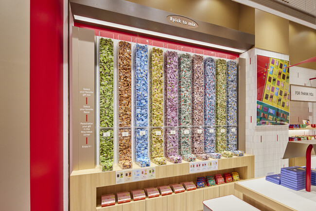 当店舗では、日頃の感謝や労いの気持ちを伝えたいといった、年間を通じた幅広いギフトシーンに対応する製品・サービスを展開しています。1枚から詰め合わせることができる”Pick To Mix”は、贈る相手の好みを思い浮かべながら、予算に合わせて、好きな味を組み合わせることができます。また、”My KITKAT”は、購入した商品にメッセージを書いて封入したり、選んだラッピングでデコレーションするなど、商品×ラッピングで4,000種類以上の組み合わせの中から、世界に一つだけのギフトを楽しみながら作ることができるサービスです。