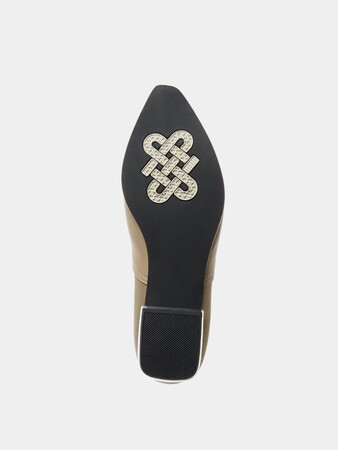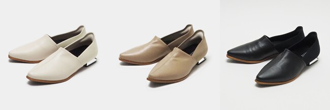 またトレンドのポインテッドトウのつま先形状、メタル塗装を施したヒールを採用し、大人女性のコーディネートに合わせやすいシンプルで上品なデザインに仕上げています。