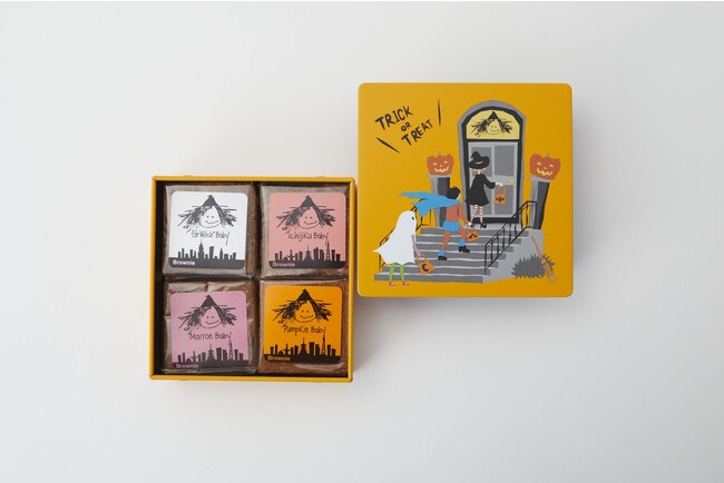後半10月6日(金)からは【お菓子なセット】秋の味覚を存分に楽しむことが出来るフレーバーを詰め合わせた『Treat』を表現したブラウニーセットを発売致します。ハロウィンらしい紫とオレンジカラーの缶は、数量限定販売となります。