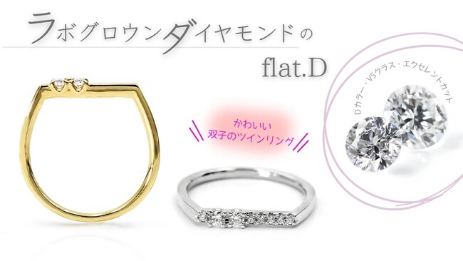 フラットなデザインが人気の【フラットD】新作はラボグロウンダイヤモンドを2つ並べたツインストーンリング。本物のダイヤモンドなのにお手頃な価格で「環境にもお財布にも優しい」リングです。