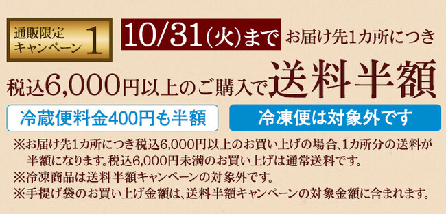 ■「送料半額キャンペーン」実施中(通販限定・10月31日までの期間限定)