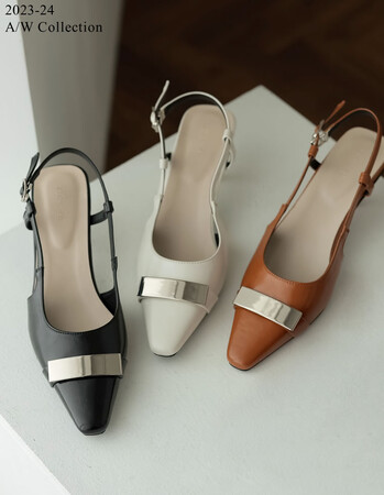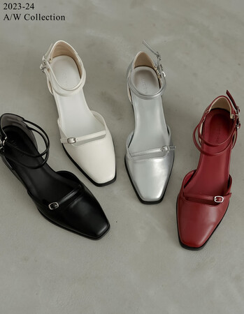 ストラップデザインが特徴のヒールパンプス。