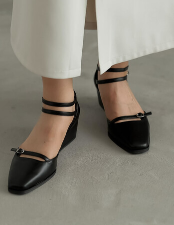足首の2つのストラップと、ウェッジヒールで安定感のある履き心地を叶えます。