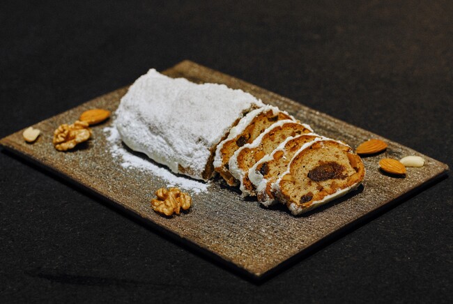 今年は、宮川が自ら足を運び厳選した、国内でも珍しい自然栽培の北海道十勝産オーガニック小麦“はるきらり”を使った「シュトレン」を2種類のサイズでご用意いたします。“はるきらり”の味わいをしっかりと感じられる生地に、いちじくの赤ワイン煮やレーズン、信州産くるみ、さらに、無農薬で、化学肥料を使わずに栽培された千葉県九十九里浜産のピーナッツを練り込んで軽やかに焼き上げました。ヨーロッパでは、クリスマスまでの間に薄くスライスして味の変化を楽しみながら少しずつ食べるという習わしの伝統的な焼き菓子「シュトレン」を、大切な方へのクリスマスの贈り物にもいかがでしょうか。