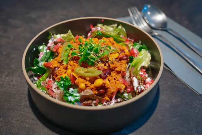 レギュラーメニューにも新味が登場。当店定番のヴィーガンライスボールシリーズは、当店シェフ自慢のメキシカンサルサが楽しめる仕様に。サンマルツァーノトマトを使用したピリ辛のトマトソースと、ヘルシーかつ満足感たっぷりのカリフラワーライスと合わせ、しっかり満腹感を得ながらもヘルシーに仕上げました。血流の流れを良くし、脂肪燃焼や老廃物を汗とともに排出する働きが期待できるカプサイシンも豊富に含まれています。