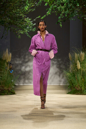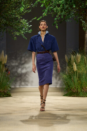 テーマは牧歌的かもしれませんが、このコレクションは、シティ・ガールや現代の園芸マニアの女性に捧げられます。都会のあちこちで30センチ四方ほどの空間が、突然庭になることにお気付きですか? 現代の女性のバッグには、壁に囲まれた庭に咲く花ではなく、ノートPCやランチボックスが入っているでしょう。そしてハイヒールのストラップサンダルは、大地の上ではなく、舗道をさっそうと歩くためのもの。とはいえ、現代の女性は、マックスマーラのランド・ガール ルックをまとって外に踏み出すことで、自分自身が新しい波を起こしていくのです。