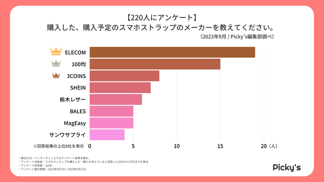 「Picky’s」は、インターネットショッピングにおいて、購入前に試せない・選ぶべきものがわからないという課題の解決を目標に、あらゆる商品のおすすめランキングや検証レビューを紹介するサイトです。このたびPicky’s(https://rentry.jp/note/)では、スマホストラップについてインターネット上でアンケート調査を行いましたので発表いたします。