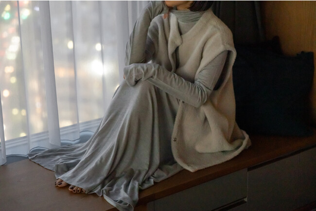 今秋からは現代人のQOLに直結する一日のなかの「寝る時間」に着目し、睡眠環境の質を高めるための「Products for sleep environment」というシリーズを展開しています。シリーズ第3弾となるアイテムは、カシミヤとシルクを配合したジャージーアイテムと優しい香りを楽しめるアロマアイテムです。秋から真冬まで暖かく過ごすことができるカットソーは、お部屋で過ごす寝る前のひとときにピッタリです。