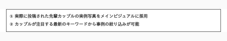 実際に投稿された先輩カップルの実例写真をメインビジュアルに採用