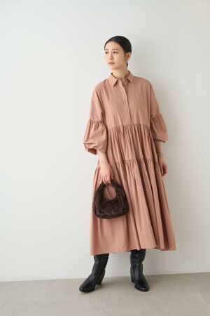 袖パフの切り替えを低めに設定し、襟とカフス部分に知的でベーシックなシャツディティールを取り入れることで程よく甘さを引き算。長すぎない丈で様々なシューズともコーディネートしやすいバランスで着こなせます。