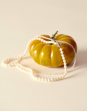 遊び心のあるジュエリーは優しい純白なパールが主役。