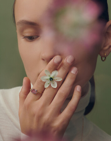 デザイナー考案のオリジナルカットが天然石の魅力を引き出し、動くたびに指元で輝きます。