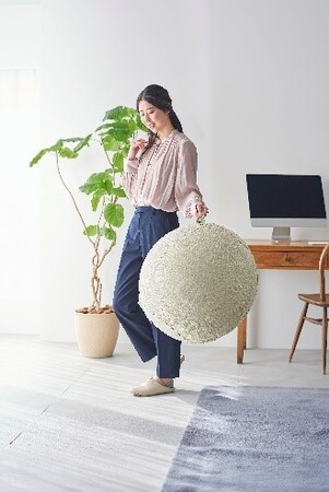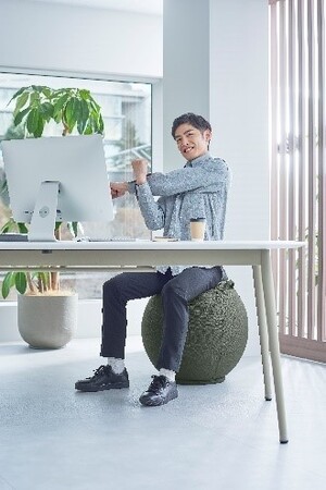 「台座付きバランスボール」は、台座付きで転がらず、自然に体幹をキープしながら座れるバランスボールです。初年度販売目標数量は6,000個です。