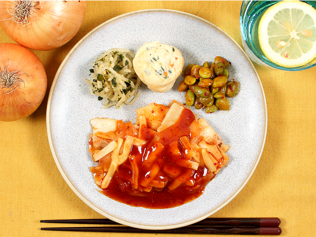 副菜は、大根のわかめあえ、チヂミボール、枝豆のザクザクラー油です。