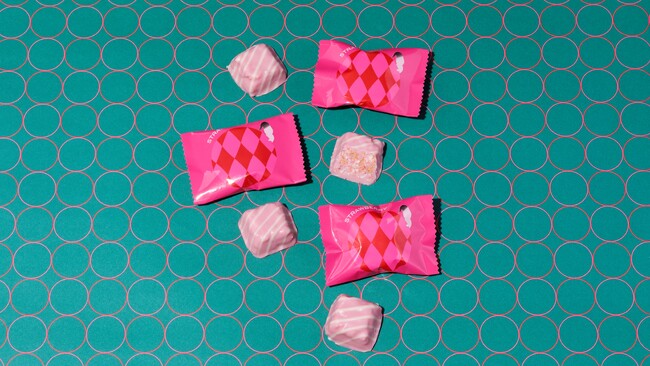 ミルキーなホワイトチョコレートをベースに、さくさくとした食感のクランチと甘酸っぱい苺のパウダーでアクセントを付けました。