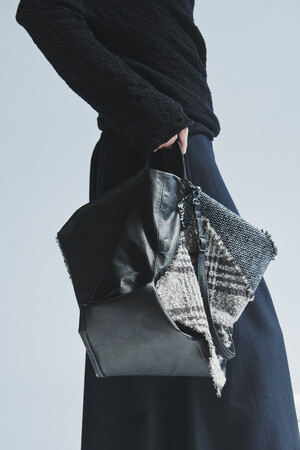 ツイードは、ヨウジヤマモトでも度々用いられるブランドにとって大切な素材。ブラックのTULIPSをベースに、パターンの異なる4種類の尾州ツイード生地を組み合わせ、アシンメトリーの美学を表現する不規則な構成と、秋冬ならではの素材感が魅力です。