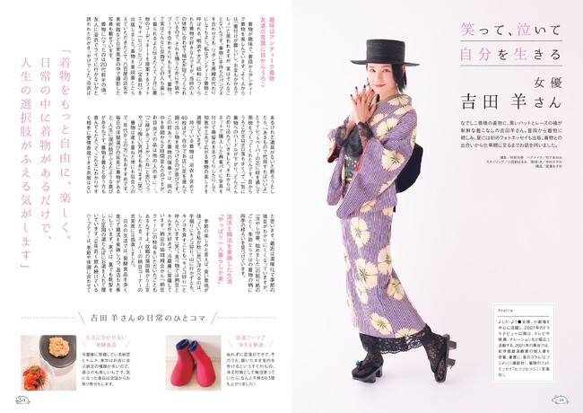 なでしこ模様の着物に、黒いハットとレースの袖が新鮮な着こなしの吉田羊さん。普段から着物に親しみ、夏には初のフォトエッセイも出版。着物との出会いから仕事観に至るまでお話を聞きました。