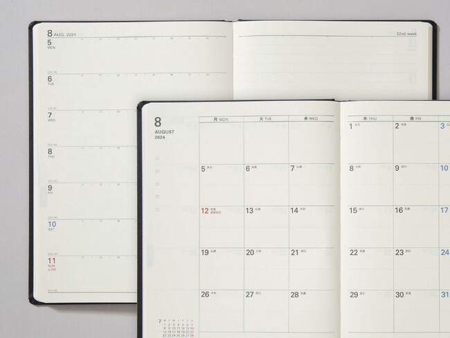 書き心地のよい本文用紙、シンプルで見やすい書体、平日・土曜・日祝がひと目でわかる3色印刷など、「手帳は高橋」ならではの手帳づくりのノウハウをつめこみました。