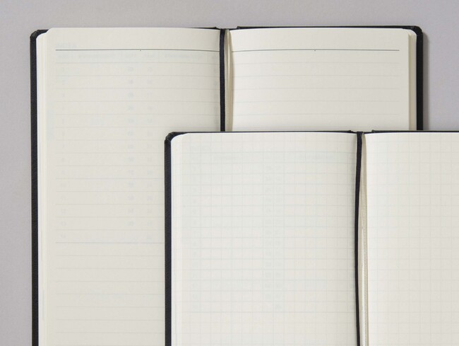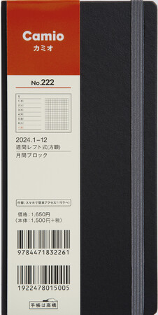 スリムな手帳判の『Camio』はレフト式、バーティカル式、マンスリータイプの3種類の記入形式に、それぞれ横ケイタイプと方眼タイプの全6点をご用意しました。好みに合わせてお選びいただけます。