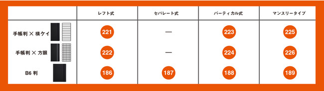 近年人気のB6サイズ『Camio B6』はレフト式、セパレート式、バーティカル式、マンスリータイプの全4点のスタンダードな記入形式がそろっています。