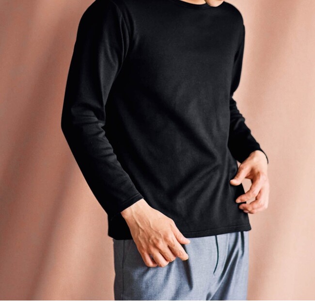 商品名/綿混あったかインナー・裏起毛クルーネック長袖メンズ(超寒がりさん)