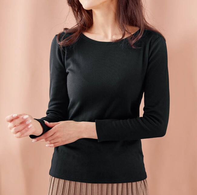 商品名/綿混あったかインナー・裏起毛クルーネック長袖レディース(超寒がりさん)