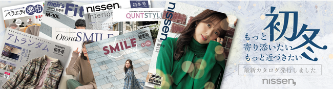 株式会社ニッセン(本社:京都市南区、代表取締役社長:羽渕淳)は、初冬シーズンの新作商品を掲載したカタログ8誌を、10月11日(水)に発行。デジタルカタログをニッセンオンラインショップ(https://www.nissen.co.jp/)で公開いたしました。また、ニッセンオンラインショップでは、ネット注文限定のお得なキャンペーンを開催しています。ぜひ、ニッセンで「ちょっといいな」を感じるお買い物を楽しんでください。