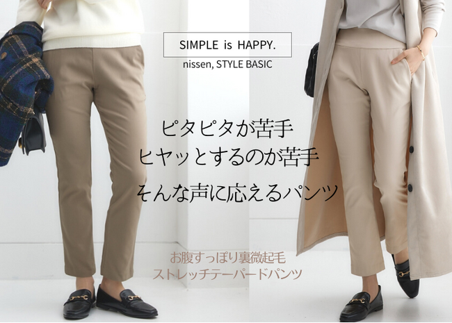 さらに、「テーパード」シルエットが新登場。腰周りを包み込みながら、太ももにかけてゆったり楽ちんなはき心地を目指しました。スッキリはきたいけど、ピタピタは苦手!そんな人に、オススメしたいパンツです。