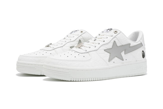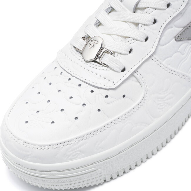 アッパーには高級感のあるカーフスキンを使用。全体にデボス加工でLINE CAMOのパターンを施し、クラシックなシルエットとBAPE(R)独自のアイコニックなデザインが調和し、魅力的な一足に仕上がっています。