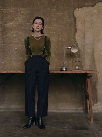 色が時を経て変化する姿を編みで表現したグラデーションのシャギーニットや、サスペンダーディティールのパンツ、ネップツイードで仕上げたCPOジャケットは同素材のスカートとセットアップにするなど、長く愛されてきたクラシカルなアイテムに、ほどよいひねりを加えています。ウールコートには柔らかく上質な表面感のラムウールを使用。リバーシブルのボアコートやマルチウェイスカートなど、素材の良さと機能性を兼ね備えたラインナップになっています。