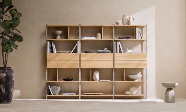 お客様がインテリアを通して個々のライフスタイルや個性をアピールする傾向が強まる中、Calgaryは美と機能性を融合させた多目的な収納システムとして注目されています。「お客様はパンデミック後も、自宅の模様替えや整理整頓をし、快適で豊かな生活を求めています」とディトリウ・ジェンセン氏は話します。「シンプルでありながら洗練されたデザインは、中身を引き立てるオープン収納で、持ち物をすっきりと整理することができます」とも紹介しています。
