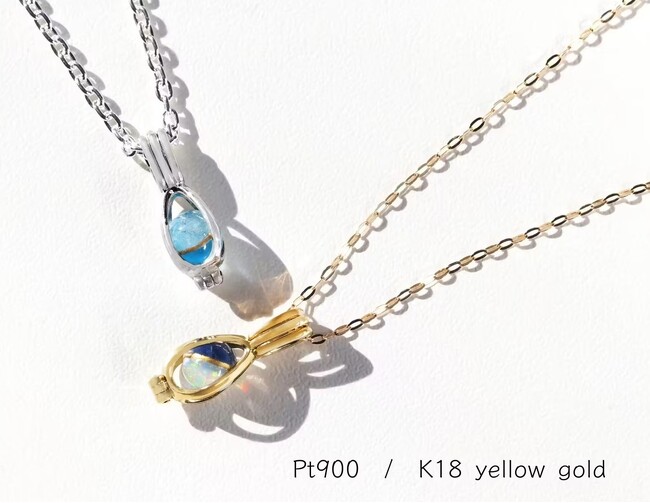 2色珠の専用ペンダントトップもご用意しております。素材は『K18イエローゴールド』『プラチナ900』『925シルバー』の3種類。あなただけの2色珠をジュエリーとして身に着けていただけます。