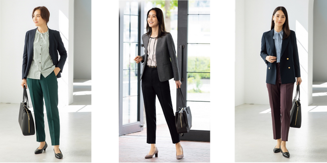 AOKIではこれまでに、お客様のお声をもとに数多くの商品開発をしてまいりました。この度、はくだけで簡単に美脚が叶う『バレリーナパンツ(TM)』を新たに展開いたします。本商品は働く女性の多くが求める、はき心地・シルエット・機能性を網羅した一着です。