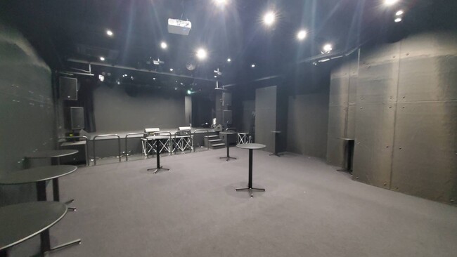 フロア内のどこにいても音が行き渡る様に、一から設計。ステージに設置された多くのムービング照明が、夜空に瞬く星のようにアーティストを素敵に彩るイベントスペースとなっております。