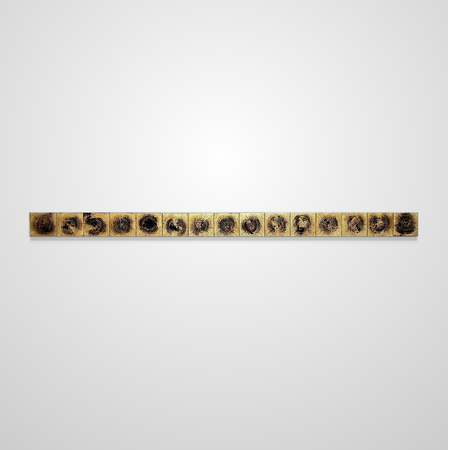 表現方法・制作素材: 金箔、杉 / Gold leaf on Japanese cedar wood