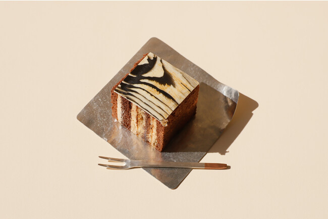 本橋氏の「MATRIX」シリーズ作品からインスパイアを受け、異なる複数の時間軸が一つになったものである年輪を表現しています。様々な素材を使用して、食べ進めていくごとに味のバランスが変化するガトー。