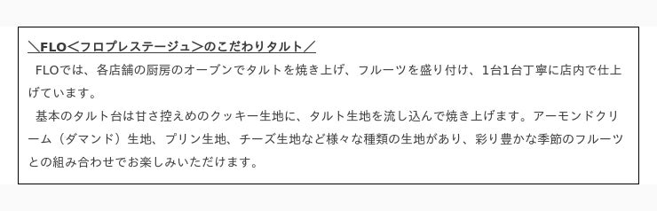 FLOの「キャラメルプリンタルト」は、やさしい香りと甘さの中に卵のコクやキャラメルのほろ苦さもあり、シンプルな中にも食感や素材の美味しさを感じられるタルトで、毎日お店のオーブンで1台1台丁寧に焼き上げているFLOの定番人気商品の一つです。