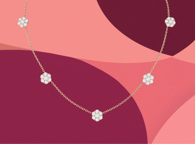 ローズゴールドとダイヤモンドが奏でる光のハーモニーが、花々のペンダントに優美に広がり、ネックラインを明るく照らし出します。ネックレスには5つのモチーフがあしらわれ、作品はまばゆい輝きに包まれています。新作のローズゴールド フルーレット リングには、2022年にホワイトゴールドの作品のために新たにデザインされた台座が採用されています。