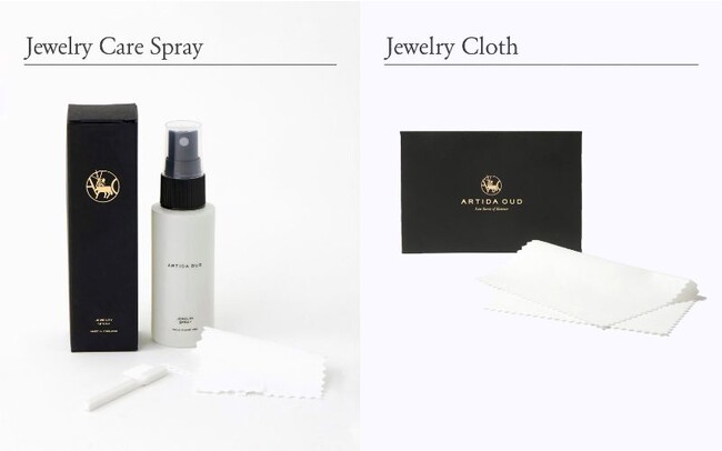大切なジュエリーをより美しく身に着け続けられるように、ケアグッズも2種ご用意。