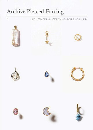 リング(7号~13号)、ピアス、イヤリングのセットをそれぞれご用意しており、アーカイブジュエリーは、必ず2点入っております。※画像は一例です。