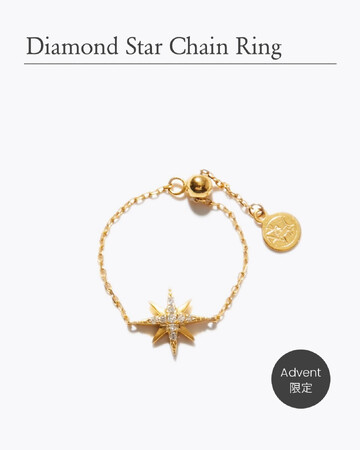 アドベントカレンダーの為に特別にデザインした、非売品のチェーンリング。夜空に煌めく八芒星を象ったモチーフに、パヴェのホワイトダイヤモンドが煌めきます。こちらはこのボックスでしか手に入れることができないスペシャルなリングで、どのセットにも必ず入っております。