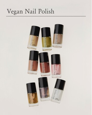 煌めくジュエリーをより一層引き立て、悠久の旅へといざなう、ARTIDA OUDオリジナルのヴィーガンネイルポリッシュも全9色のうち2色ご用意。