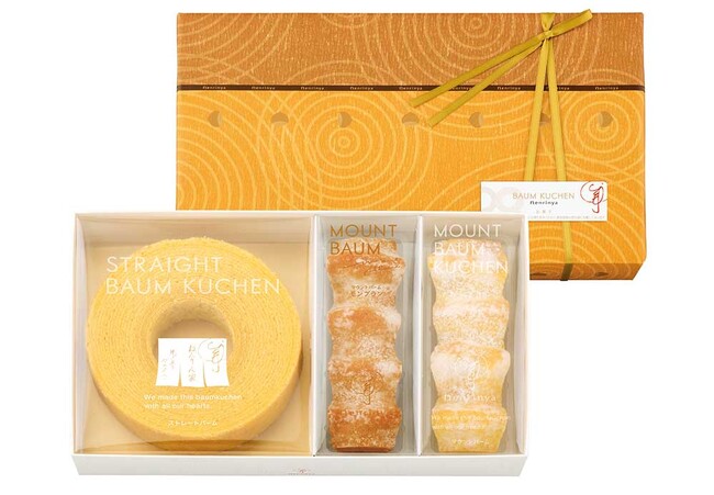 ねんりん家の誇るバームクーヘンの数々を満喫いただける、秋だけのギフトです。バター風味たっぷりの代表作「マウントバーム しっかり芽」。芳醇なマロン香る秋限定品「マウントバーム モンブラン」。たまごたっぷりでふっくらジューシーな「ストレートバーム やわらか芽」。