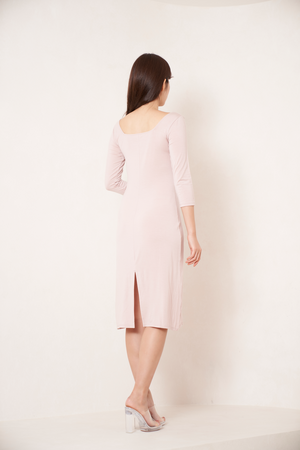 袖は8分丈、着丈は膝下のスリップタイプにすることでインナーとして美しく仕込むことができ、エレガントながら寒さ対策もできるROSIERらしいアイテムに仕上げました。