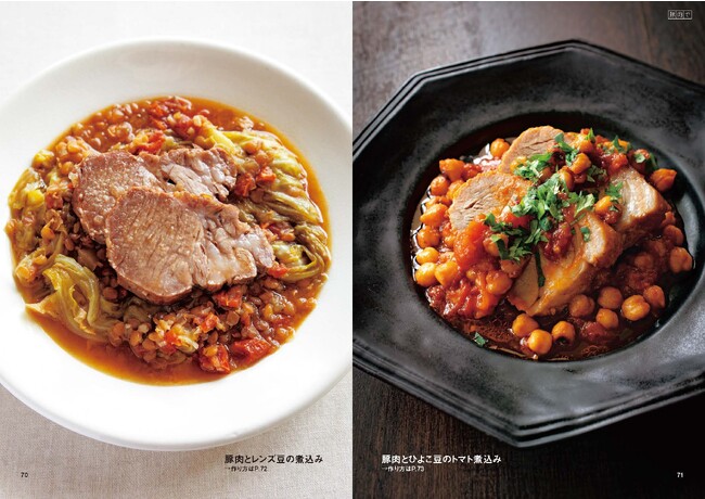 ほかに、食材を重ねて煮る蒸し煮、煮汁に材料を入れて煮るシンプルな煮込みなども紹介。洋風や中華風はもちろん、和風やエスニック風のものまでバリエーション豊かに楽しめます。