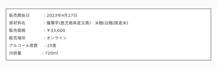 優雅なひと時を過ごすには、視覚的な優美さも忘れてはいけません。芋焼酎の常識を覆すアーティスティックなボトルデザインも、共にお楽しみください。