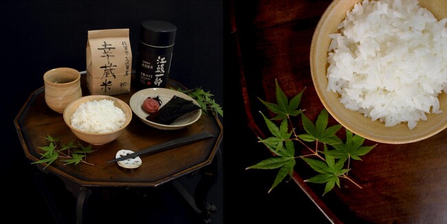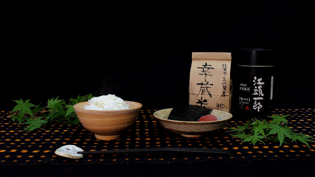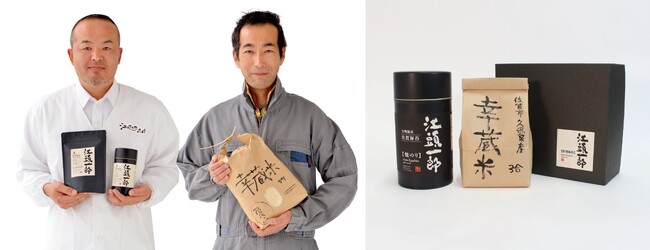 米どころは佐賀で稲作を営む下村ファームの下村幸蔵さん(弟 / 写真・右)、そして、佐賀海苔の味を叔父である先代の江頭一郎氏より引継ぎ屋号を守る、江頭一郎商店の下村敬一郎さん(兄 / 写真・左)。下村兄弟がつくる、こだわりの佐賀の恵み『幸蔵米』と『佐賀有明海産焼のり』をセットにし、小島さん作陶の『唐津山瀬飯茶碗』と共にお届けします。