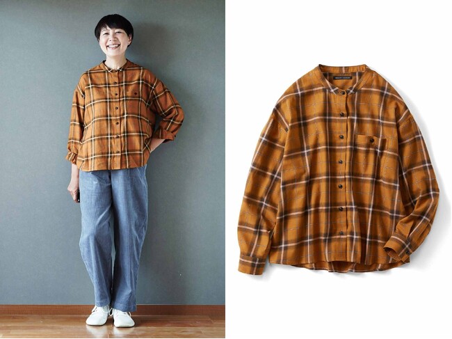 【NEW】THREE FIFTY STANDARD 金子敦子さんと作った 一枚で着こなしが完成するチェックシャツ〈マスタード〉