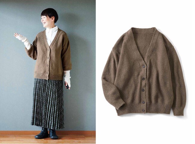 【NEW】THREE FIFTY STANDARD 金子敦子さんと作った ガーター編みがポイントのゆるっとカーディガン〈ブラウン〉